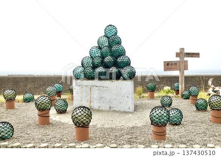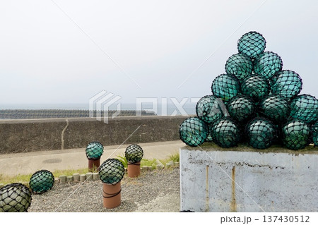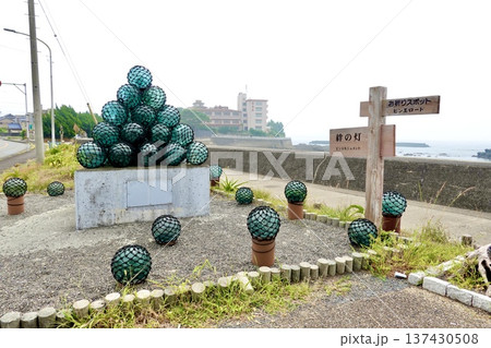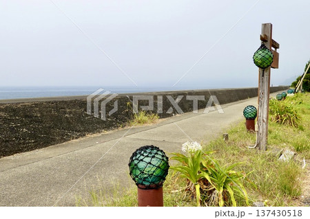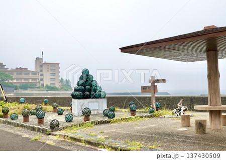 伊勢志摩 ビン玉ロード 海岸沿いの遊歩道にビン玉が並ぶ風景 三重県志摩市浜島町