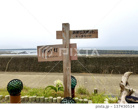 伊勢志摩 ビン玉ロード 絆の灯モニュメントが見える風景 三重県志摩市浜島町