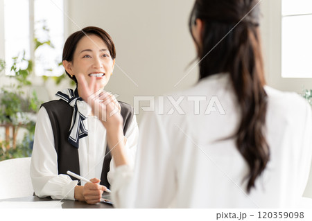 Professional Business Women Engaged in a Collaborative Discussion in a Modern Office Setting