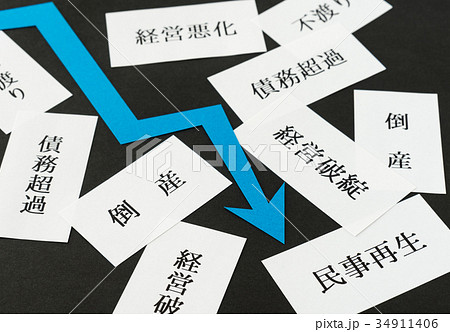 倒産 矢印 下向き 下降 不調 下がる 経営破綻 ダウン 民事再生