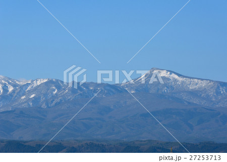 快晴に映える焼石連峰 経塚山に雪