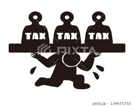 重税に押しつぶされる人のベクターイラスト|税負担・家計圧迫・社会問題素材