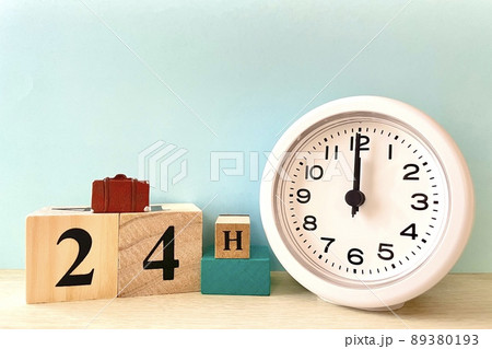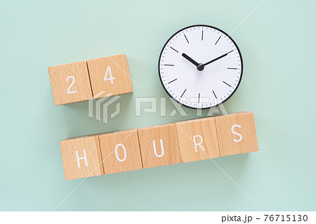 24時間|「24HOURS」と書かれた積み木ブロックと時計