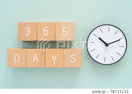 365日|「365DAYS」と書かれた積み木ブロックと時計