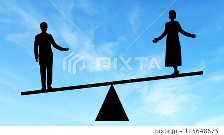 男女が乗った天秤のシルエット_スピリチュアルな空背景_ワイド