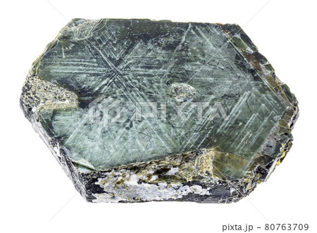rough Clinochlore (Chlorite) stone on white
