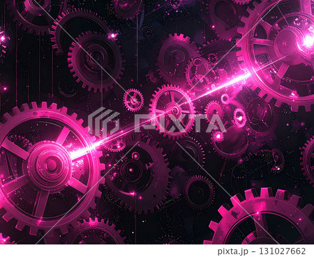 漆黒を彩る紫のネオン輝く歯車の幻想的な空間