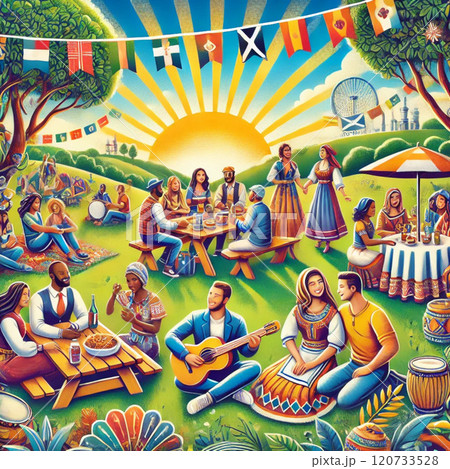 色鮮やかな人型が手を繋ぎ合う美しいチームワークの輪 | 温かみのある質感