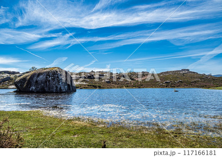 Beautiful lake at top of Penameda hill in national park Peneda Geres in Portugal.
