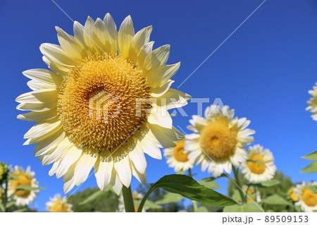 青い空がよく似合う白いひまわりはホワイトナイトー五