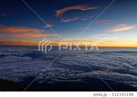 奥秩父・古礼山から夕暮れの富士山と夕焼け雲