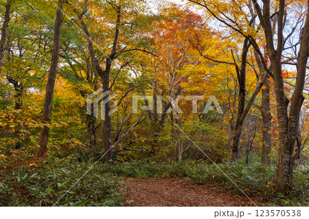 秋の北海道 紅葉の大沼公園 小沼湖畔の森