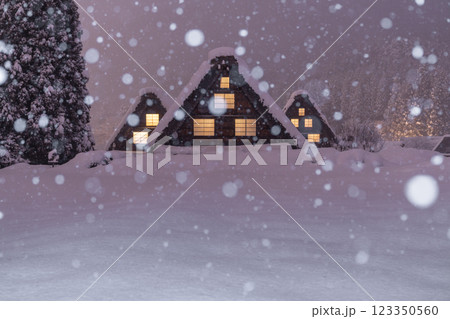 《岐阜県》積雪の白川郷・冬の合掌造り集落