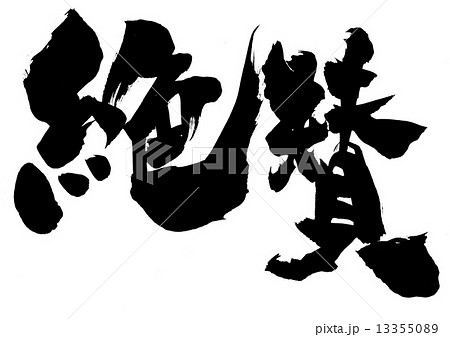 筆文字素材の手書きの【絶賛発売中】墨で書いた横書きの販促物popのイラスト