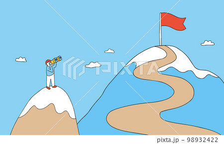 小さな目標を達成し、次のゴールを定める人物のイラスト