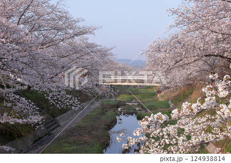 桜満開の宇治田原町、田原川河畔の桜の遊歩道「やすらぎの道」(京都府綴喜郡宇治田原町・田原川河畔)