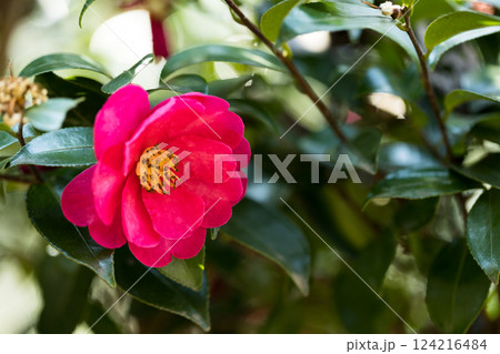 王子市の近くにある花見を楽しむ為に徳川吉宗に作られた飛鳥山公園の椿カメリアの花のクローズアップ撮影。