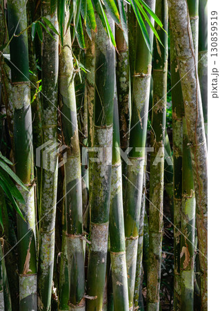 Dark rainforest with growing green bamboo tree background