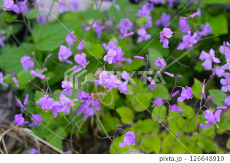 A variety of flowers in a vibrant and colorful flower garden in full bloom at a park in Japan