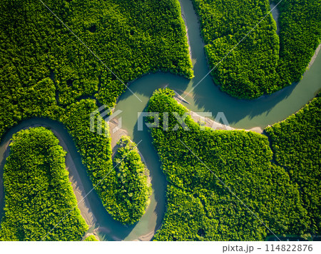 Amazing abundant mangrove forest, Aerial view of forest trees Rainforest ecosystem and healthy environment background