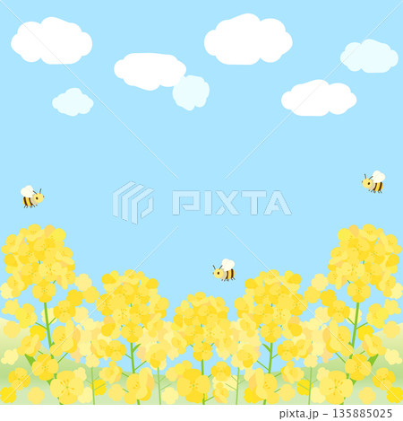 青空に映える菜の花畑をイメージしたイラスト 1:1バージョン