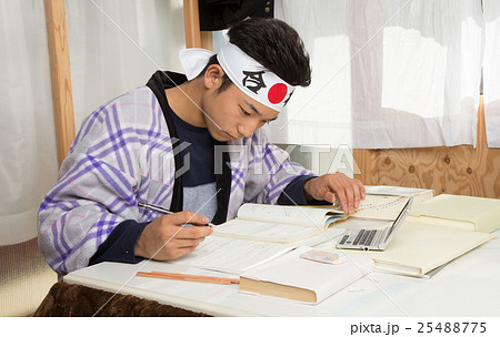 こたつで勉強する受験生