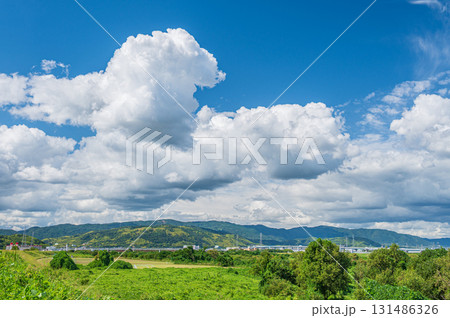 夏の淀川河川敷風景 大阪府枚方市