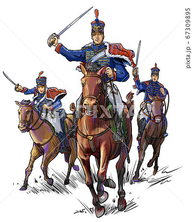 ナポレオン時代の騎馬軍団-白馬の指揮官-背景付き