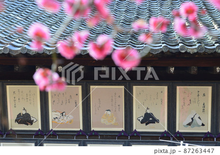 学問の神様 京都市北野天満宮の三十六歌仙と紅梅
