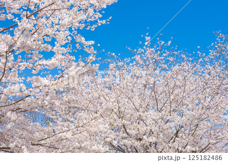 春の訪れ|青空の下に咲く満開の白い桜の木