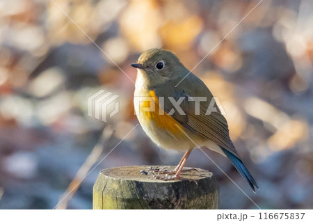 瑠璃色とオレンジ色をまとった冬に訪れる人気者 ルリビタキの若雄