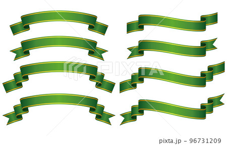 カーブのついたゴールドライン入りグラデーションリボンの単品イラスト5(緑)