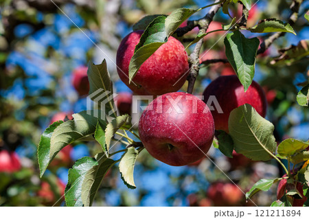秋の果樹園の美味しい秋映リンゴ(あきばえ)