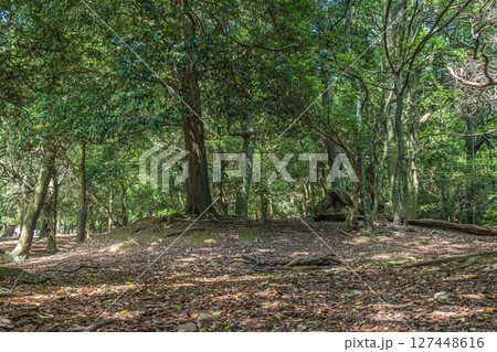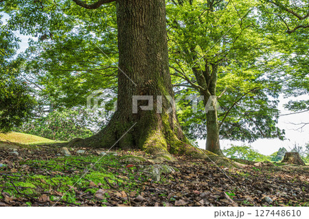 奈良公園のクスノキの大木と切り株 飛火野園地