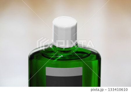 スクリューキャップを閉めた育毛剤の緑色半透明のボトル