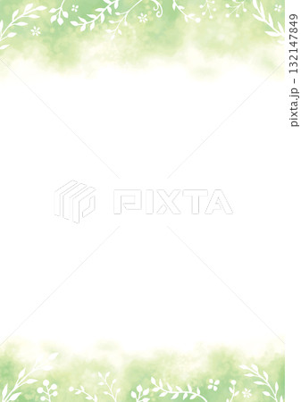 白い植物をあしらった緑色の水彩風テクスチャ背景