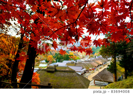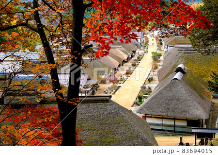 日本の秋の原風景 紅葉の名所福島県大内宿の美しい紅葉
