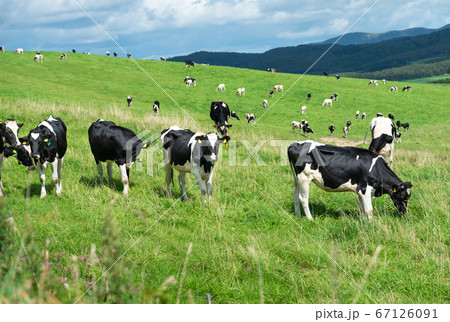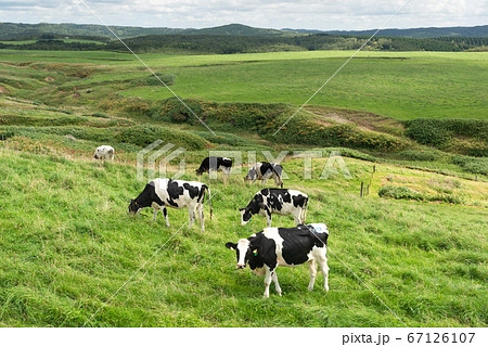北海道の広大な牧場と放牧中の牛の風景 北海道豊富町
