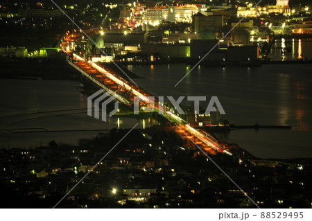 児島湾締切堤防と岡山市街の夜景3 岡山県岡山市