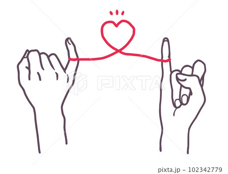 運命の赤い糸と手のベクターイラスト素材 シンプル ゆるい線画