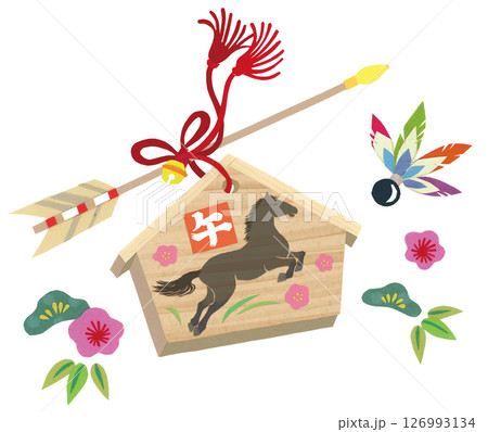 午年の絵馬のベクターイラスト。白馬、正月