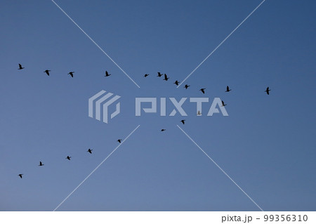 集団で移動するカワウ イメージ