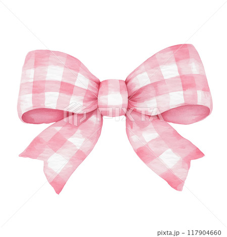 Pink Gingham Coquette Bow, cute clipart in soft pastel colors, watercolor style