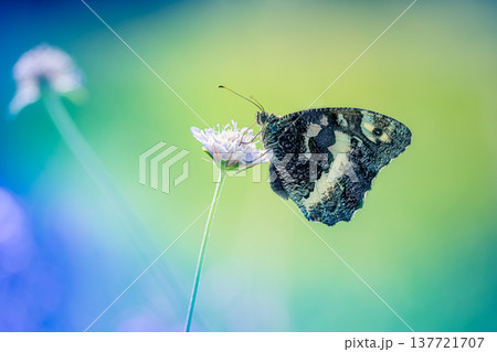 Dreamy butterfly resting on vibrant wildflowers radiant spring summer meadow macro serene floral nature background