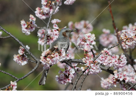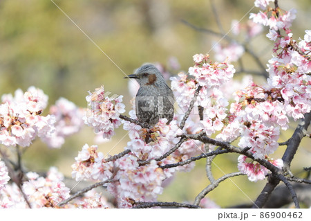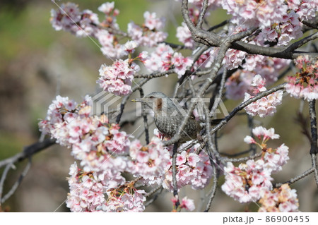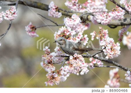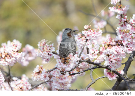 満開の桜がヒヨドリの食欲を満たしてくれる