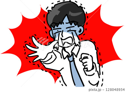 手を伸ばして助けを呼ぶ大泣き若手男性会社員のベクターイラスト