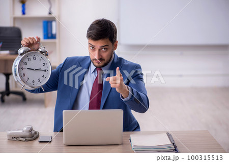 Young male employee in time management concept