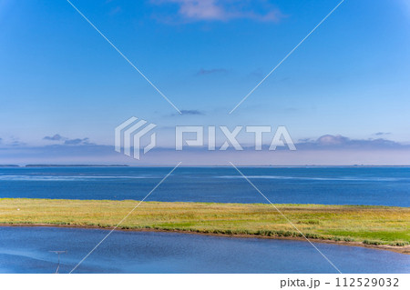 別海北方展望塔から眺める国後島の島影 北方領土 道の駅おだいどう