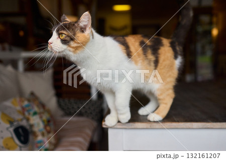 A Cute Cat lounging comfortably in a Bright and inviting Living Room filled with light