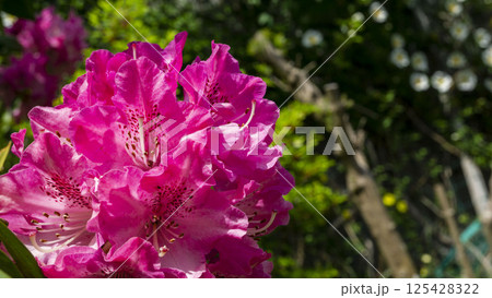 春の森林公園で美しく咲くピンク色のシャクナゲの花